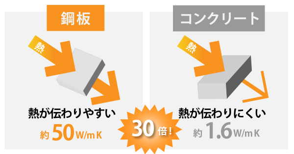 金属はコンクリートの約30倍も熱を伝えやすい素材です。