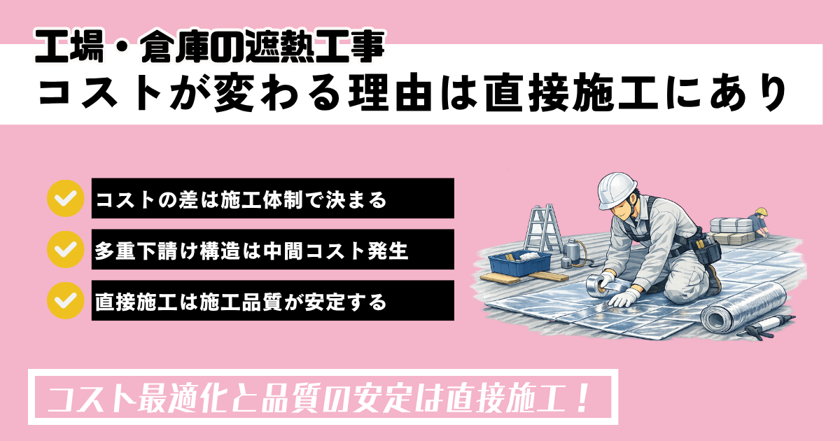 工場や倉庫の遮熱工事では、「直接施工かどうか」によってコストと施工品質に差が生まれます。